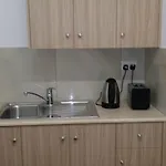 The rooms have private bathrooms with a separate toilet and a shower. They are also complete with a refrigerator, a cooking hob, and kitchenware.